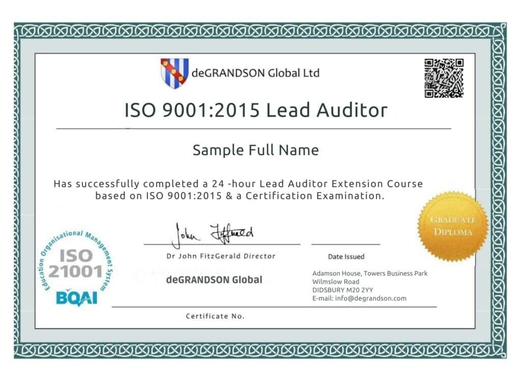 If you have previously completed a Lead Auditor Course with deGRANDSON Global, you are pre-qualified for this ISO 9001 lead auditor extension course. Just log-in, enroll and start your course immediately.